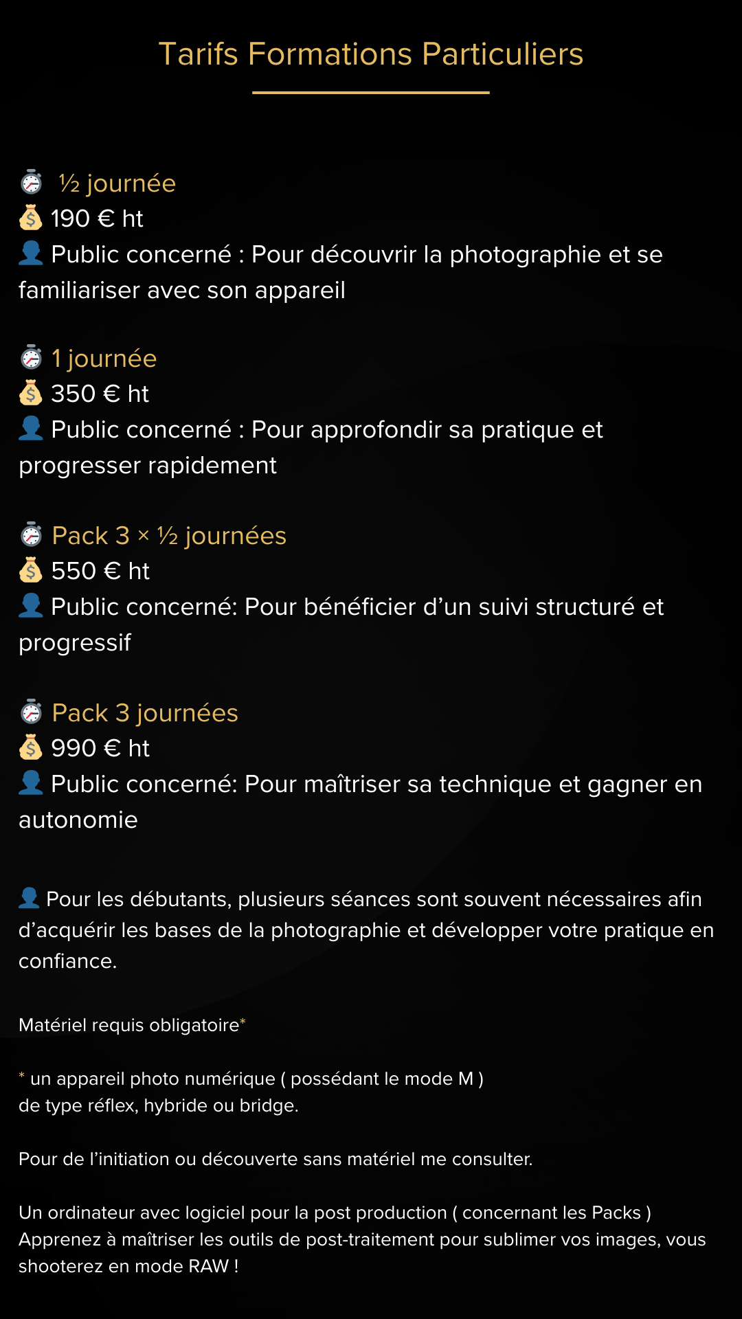 Cours d'initiations ou de perfectionnement en photographie